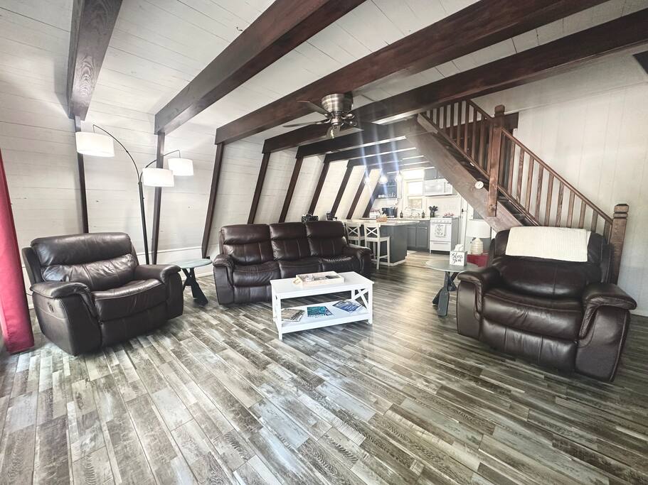 A-frames are just plain fun and this one has room to stretch out and relax! Inside you'll find a surprising amount of space, including main-level king suite with a walk-in closet, full bathroom, laundry, and a desk/vanity area. Upstairs, there are three more comfy beds, perfect for families or small groups (note: the staircase is kind of steep). For the outdoor lovers, don’t miss the screened, heated gazebo, a guest favorite for coffee at sunrise or stargazing at night. You'll also enjoy: *A fire pit *Lounge and camp chairs for relaxing *Fully equipped kitchen *TVs in every sleeping area + living room *Unlimited high-speed internet *Board games and books for rainy days or family game nights *Fishing poles * Use of kayaks Bringing a Boat or RV? No problem, there’s plenty of space for trailer or RV parking right on-site. Prefer to rent? Buchanan Resort is just 3 minutes away and offers boat rentals for your convenience.
